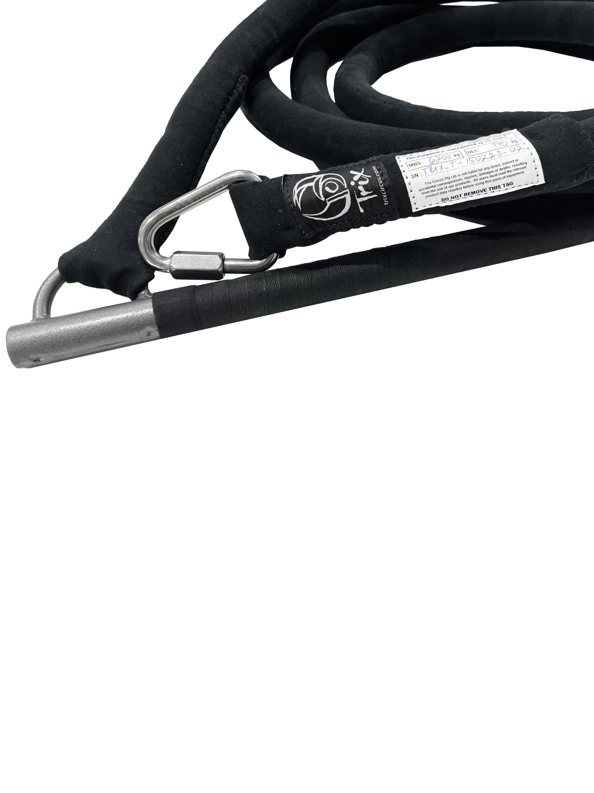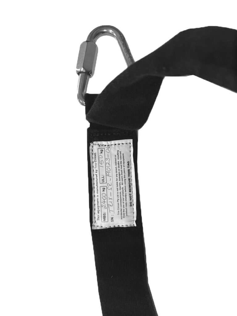 Below is a gallery to assist you in finding your serial number on Trix Circus equipment. Each piece of equipment is labelled with a serial number beginning with TRIX- and you can find it either stamped onto the thimble, maillon or steel or written on the product label sewn onto the equipment. Register your Trix Brand product(s) immediately upon receiving your equipment and document the serial numbers in your Inspection Logs. Both of these steps are required for the Trix Circus Guarantee Policy.