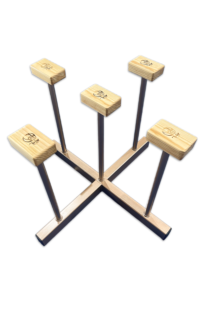The Trix Circus X shaped base of this hand balancing stand provides multiple options for canes to be used in different configurations. The X shaped stand can work with up to 5 canes at the same time.