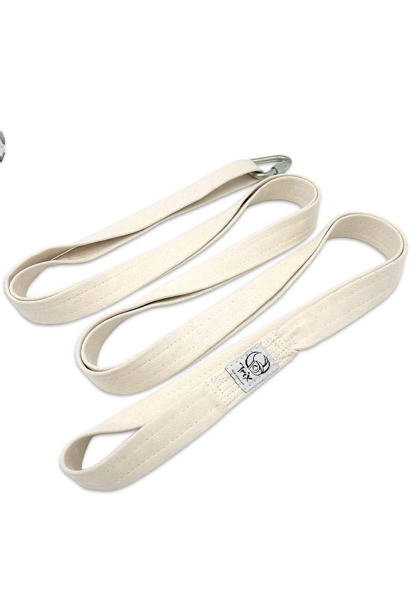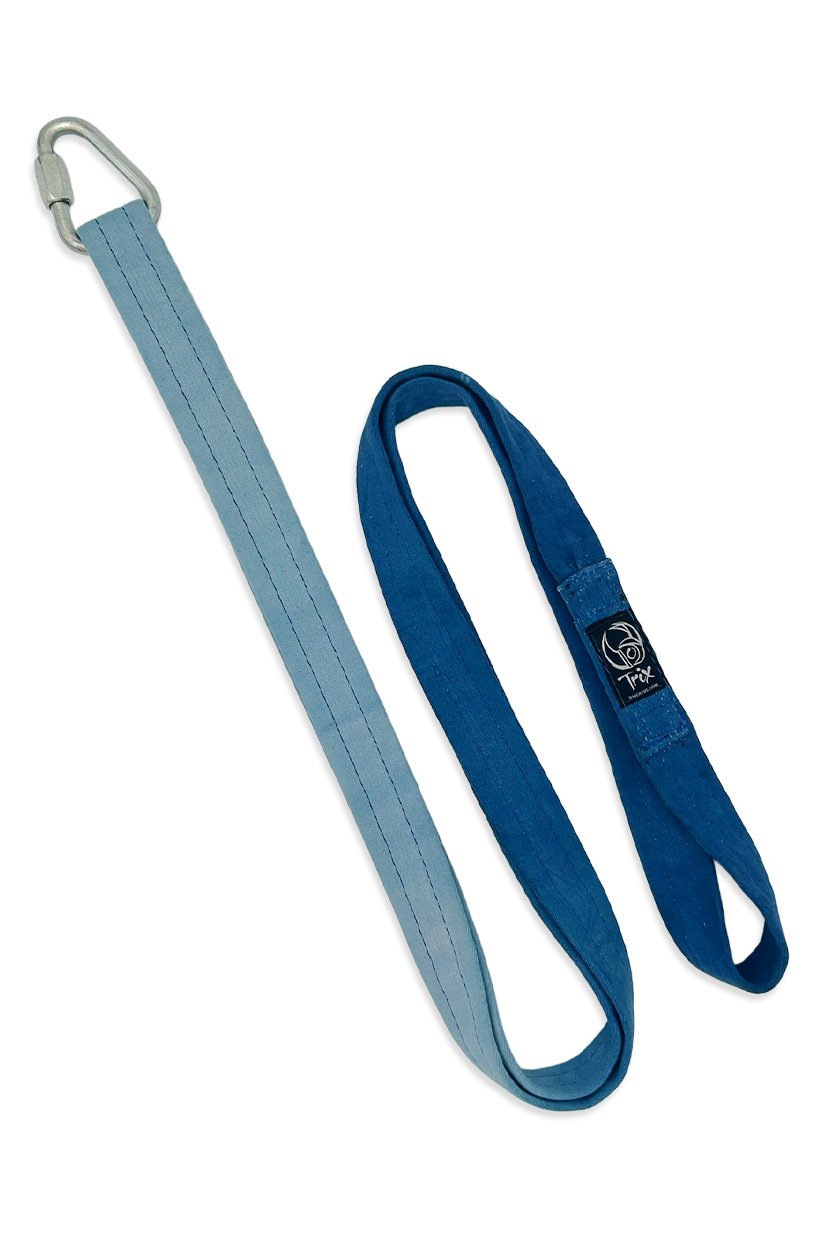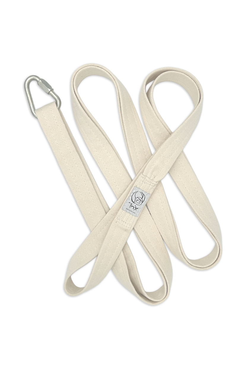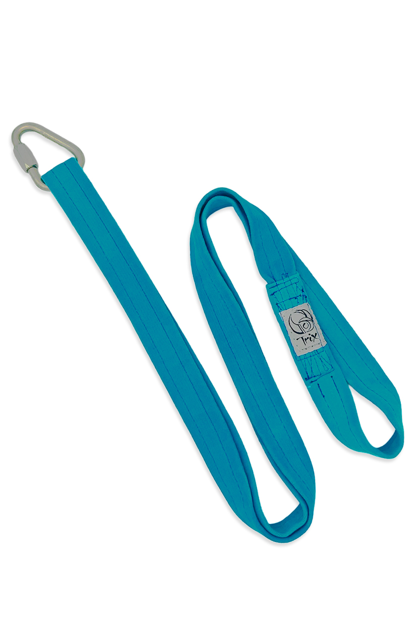 This accessory is a sliding replacement for a rigging sling at the top of your lyra. It connects your aerial ring to its hanging point as well as keeping the swivel away from your working space. The strap provides endless opportunities for performing skills and choreography above the hoop within and around the strap. It is particularly good for dynamic work from the strap to the hoop as well flexibility work in which you move the hoop into different positions in contrast to your body. This is our standard Trix cotton strap and a nylon webbing interior for safety. The strap includes one 12mm delta maillon over which the strap slides.